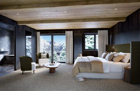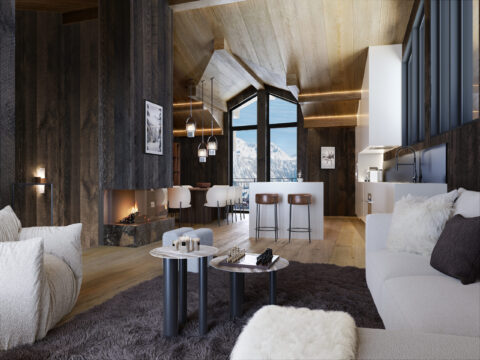 Idéalement situé en bordure des pistes, le chalet offre un espace unique et des installations « ski in ski out ». Un chalet à couper le souffle.